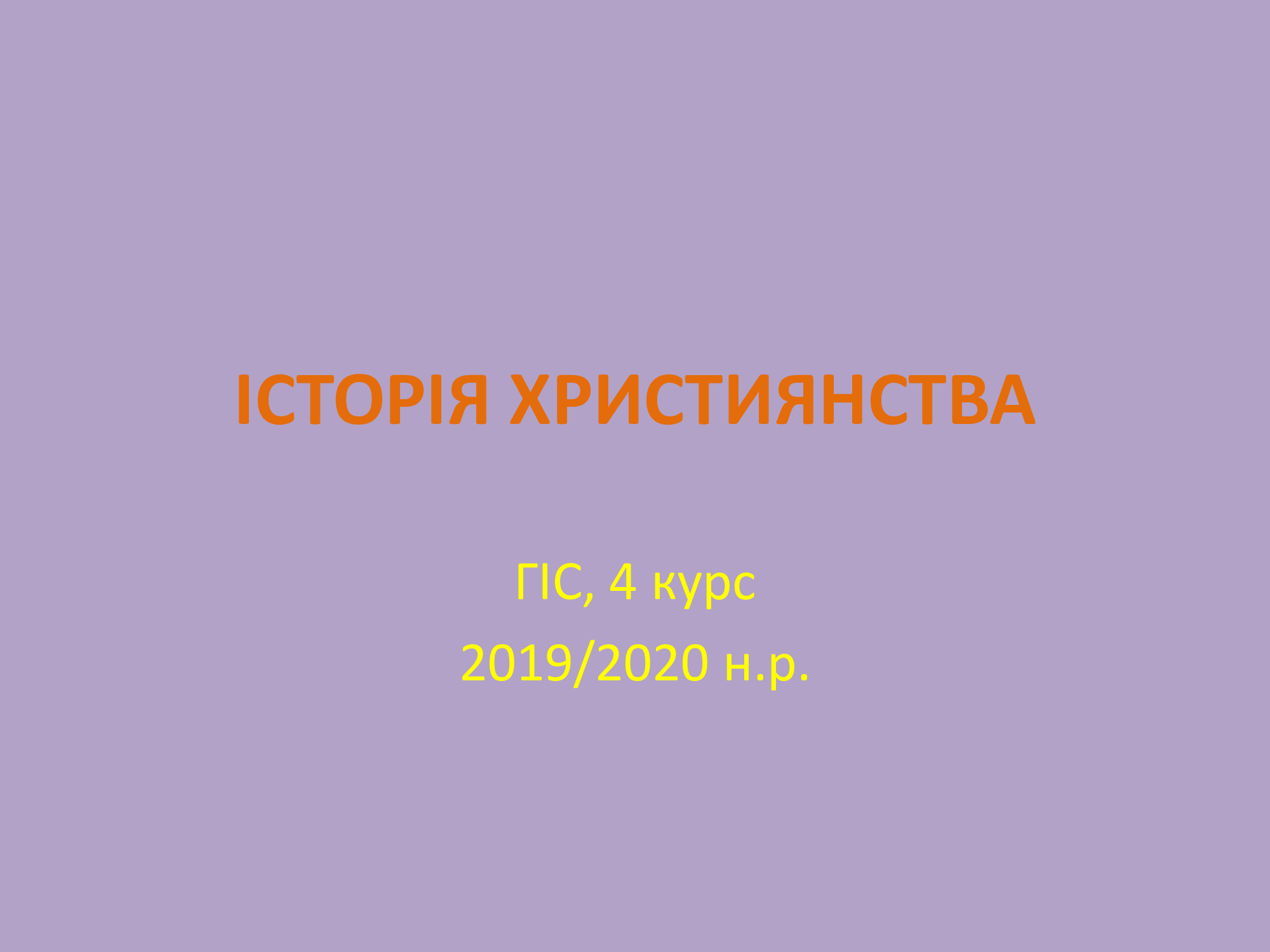 Курс "Історія християнства" присвячений вибраним церковно-історичним питанням. Розглядаються події з історії Церкви в Україні, які особливо вплинули на сучасну церковну ситуацію в Україні. Студенти матимуть нагоду прочитати і проаналізувати важливі документи, ознайомитися з найновішими напрацюваннями в українській церковній історії.